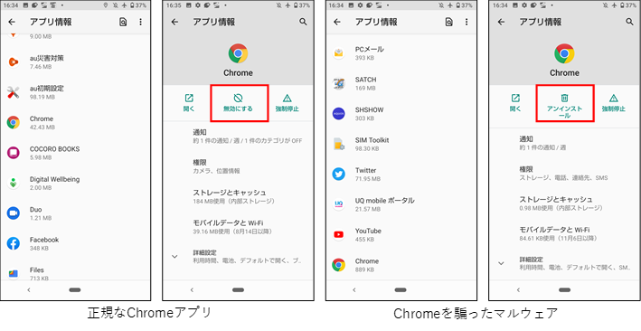 図3. 正規アプリと詐称された正規アプリ