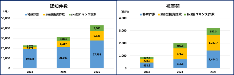 ここ数年でSNSを起点とした投資詐欺・ロマンス詐欺が増え続けています。警察庁が公表した「令和7年における特殊詐欺及びSNS型投資・ロマンス詐欺の認知・検挙状況等について(暫定値)」※1(以下、警察庁調査)でも増加傾向は明らかと言えます。