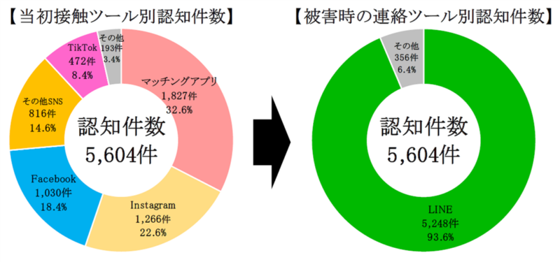 図3 SNS型ロマンス詐欺の当初接触ツールと被害時の連絡ツール(警察庁調査)