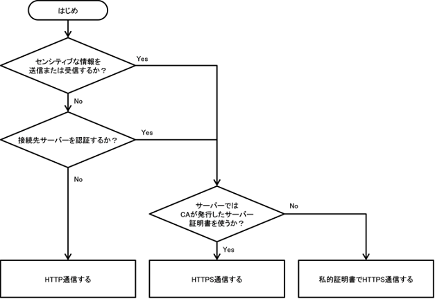 「5.6. 暗号技術を利用する」で解説したパスワード鍵や公開鍵等と同様に、生体認証機能を用いて鍵を生成する場合においても、第三者による盗聴を防ぐため一定の基準を満たした脆弱でない暗号アルゴリズムを設定すること。また、暗号アルゴリズムだけではなく、暗号モードやパディングについても脆弱でない安全な方式を選択すること。