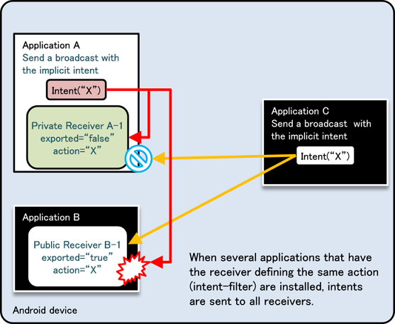 Handle the received intent carefully and securely, even though the intent was sent from the same application.